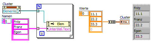 - Wenn du einen Cluster dynamisch definieren könntest (d.h. Elemente mit neuen Namen erstellen), dann müsstest du auch UnbundleByName dynamisch an die Namen anpassen können - alle diese "könnte" verdeutlichen Dinge, die in LabVIEW nicht möglich sind…