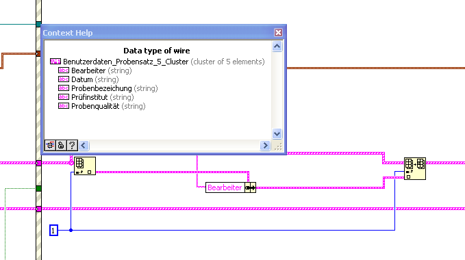 Ich habe auf einer Tab Control auf 5 Tabs immer den gleichen Cluster mit Bedienelementen. Um diese möglichst elegant in einer Statemashine weiter verarbeiten zu können, wollte ich diese z.B. zu einem Array oder Cluster zusammenfassen, was mir aber leider nicht gelingt. Beim Zusammenfassen enthält das resultierende (z.B.) Array immer nur das eine, letzte Element das ich dazu gefügt habe, wie im Bild zu sehen. Ich würde mich über Hinweise, wo mein Denkfehler ist, freuen Smile
