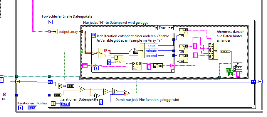 Die Berechnung unten in der Loop ist auch hochgradig Rube-Goldberg: es gibt da eine Modulo-Division in der Numerics-Palette… Wall