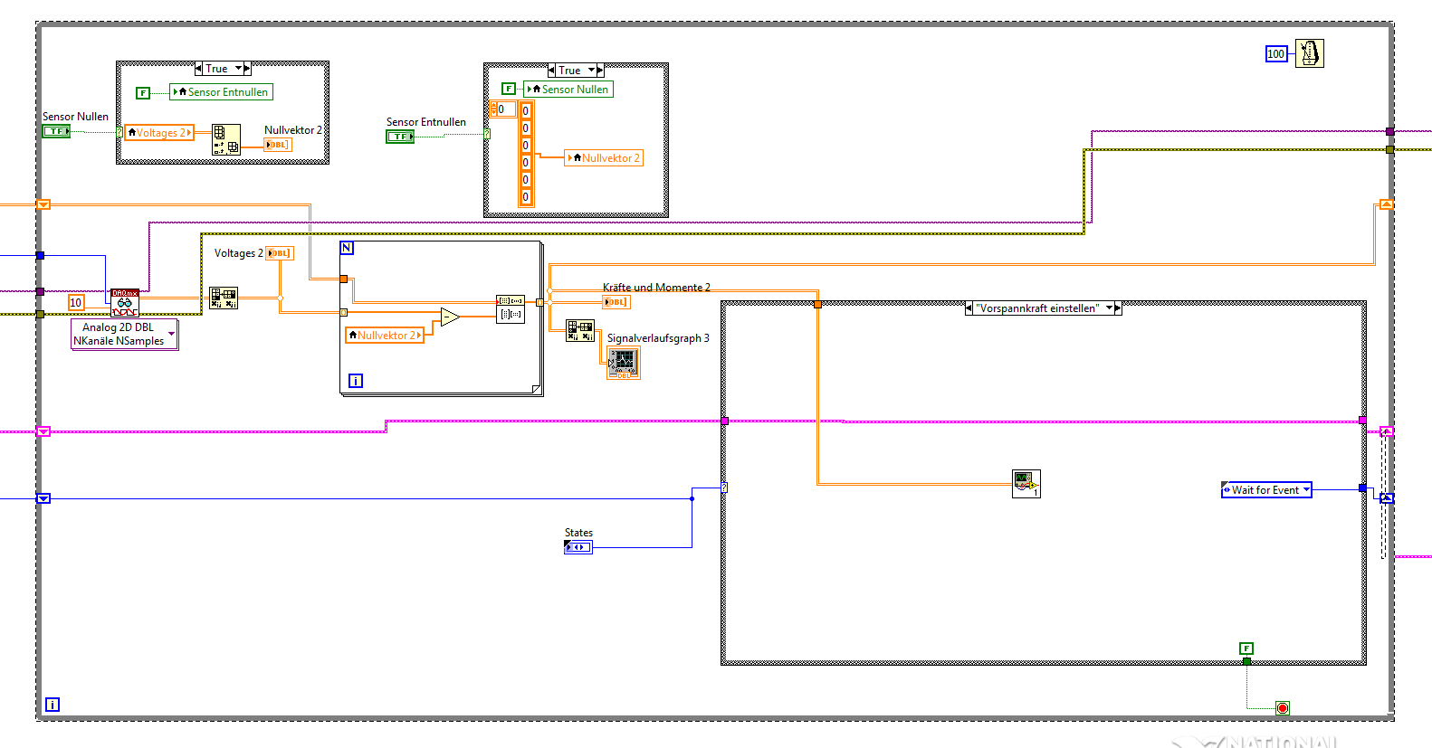 Ich möchte die Daten meiner DAQ Karte in mehreren States verwenden (Vorspannkraft einstellen und Daten erfassen). Muss ich den DAQ-Task in jedem State neu starten oder gibt es eine Möglichkeit die Sensordaten durchzuschleusen?
