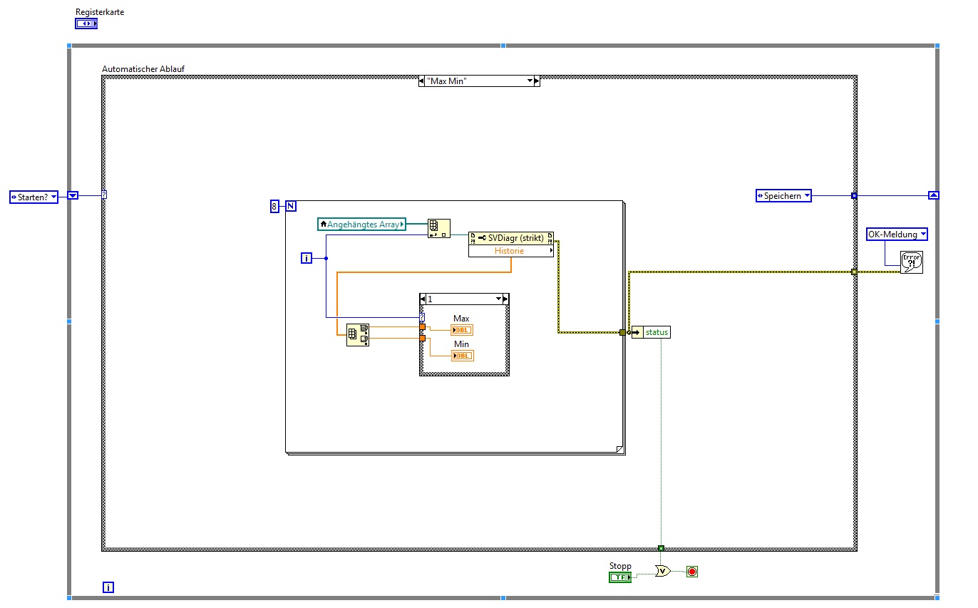 Die States sind jetzt alle verdrahtet. Wobei hier sowieso nur der letzte nicht verdrahtet war. Wie ich dies im Falle der anderen zwei Anschlüsse machen soll (Globale Variable und Array aus Referenzen) weiß ich leider nicht. Soll ich da in jedem Case den Schieberegister links mit dem rechts durch das ganze Case verdrahten, oder wie stellt man das sinnvoll an?