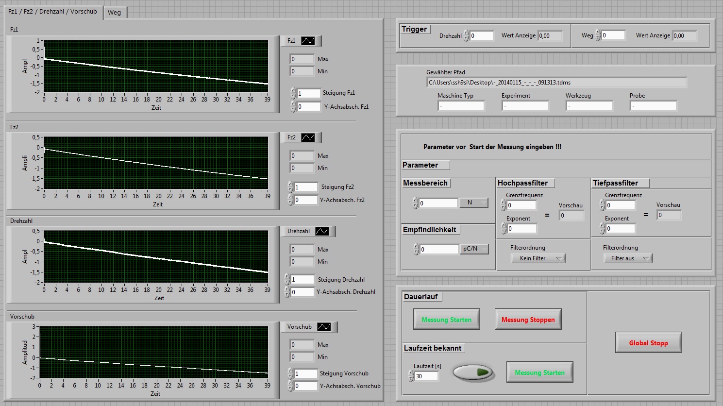 Diesbezüglich habe ich gerade an Fz1 eine Kraftsensor angeschlossen und an Vorschub ebenfalls wie an Drehzahl eine Spannungserzeugung. Das verhalten hat sich nicht geändert.