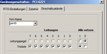 ich benutze die DIO Karte 6509 von NI. Beim Einlesen von Port 1 habe ich seltsames Phänomen. Von meinem Prüfgerät wird auf Port 1 Leitung 2 ein high (~5V) gesendet.