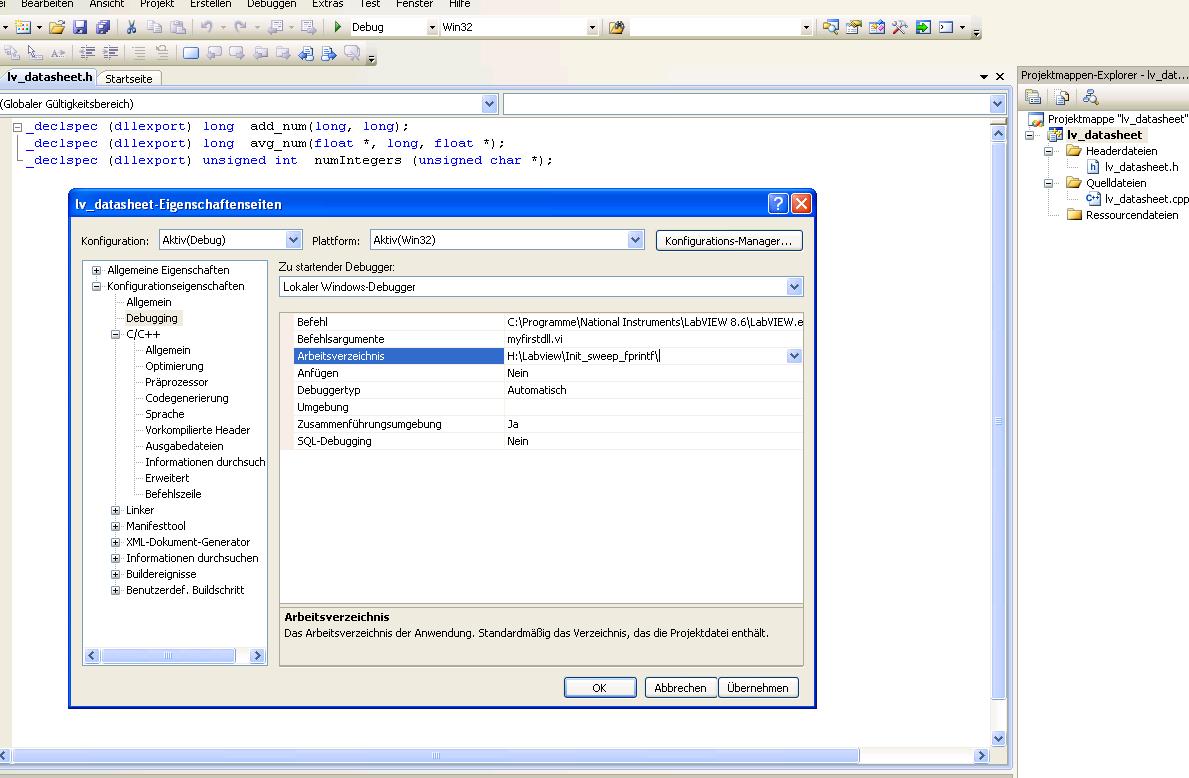 vielen Dank erstmal das erklärt mir warum LabVIEW abstürzt. Breakpoints an anderer Stellle werden aber nie angefahren. Ich habe das VS project und die vi mal angehängt. Die Verzeichnisse sind auf c:testdll gesetzt.