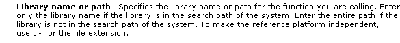 beim einstellen des dll-namens "Knoten zum Aufruf externer Bibliotheken" gebe ich ja den bibliotheknamen an, kann dieser aufrufparameter "parametrierbar" gemacht werden, weil momentan muss ich mit einem case 20 mal die einzelnen bibliotheken öffnen, oder bei einem pfadwechsel muss ich 20 mal den pfad anpassen. wenn ich den pfadnamen + dllnamen übergeben könnte, spar ich mir das.
