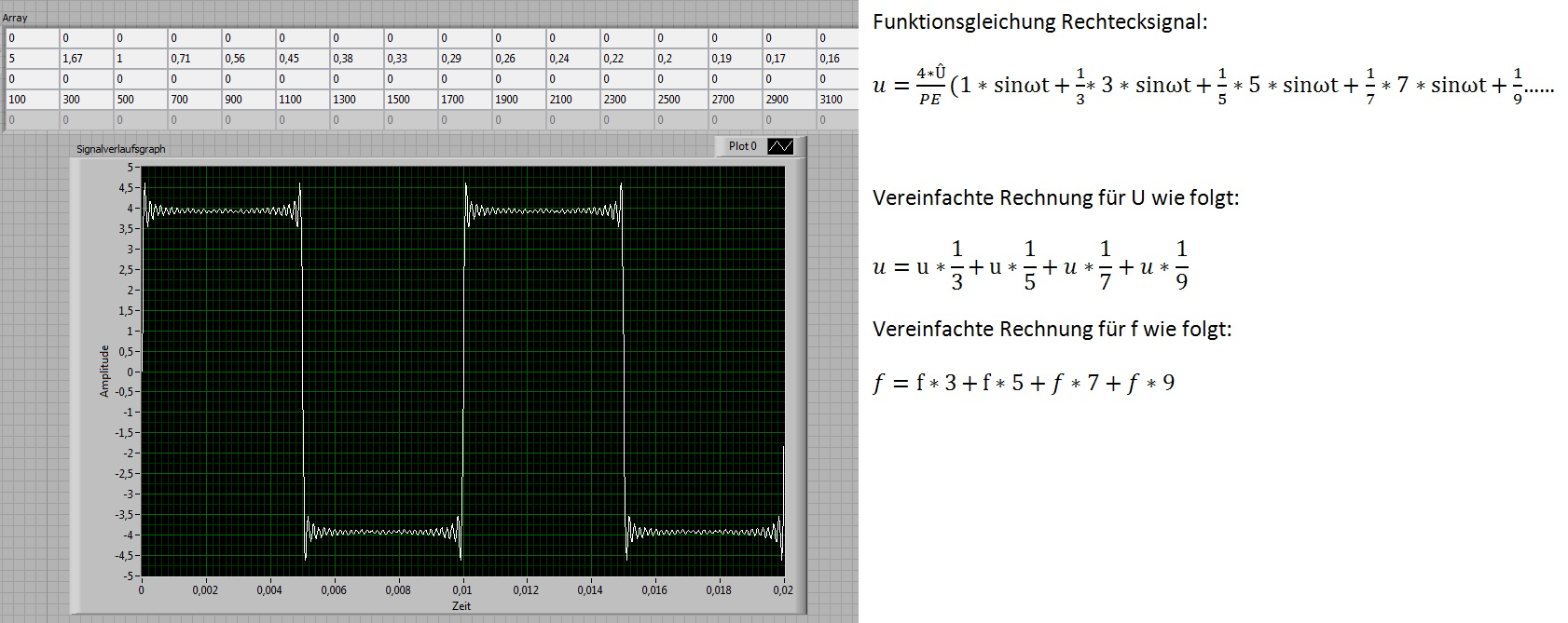 Denn bei dem vorgegebenen Spektrum handelt es sich doch eindeutig um die ersten 5 Spektralkomponenten eines symmetrischen Sägezahns mit dem Bildungsgesetz der Ampituden 1; 1/3²; 1/5²; 1/7²;...