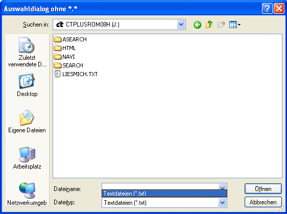 ' schrieb:Allerdings kann man trotzdem später auf das Pulldown-Menü "Dateityp" klicken und hier wieder "All files" auswählen und ne beliebige Datei auswählen