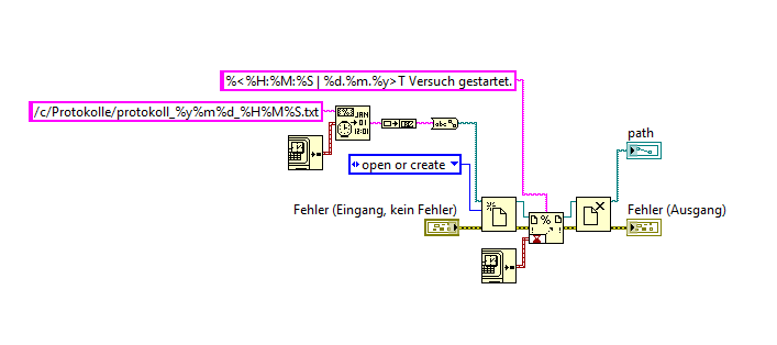 Hm, wenn ich das was Du empflielst, anwenden würde, würde ich einen Pfad wie /c/Protokolle/\protokoll_120511_143810.txt bekommen - da bleib ich lieber bei der String-Variante, glaub ich.