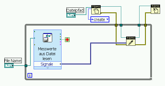 hier gezeigt worden ist. Kurz: ich will in großen Messdateien (bis zu 300 MB *.lvm) beliebig hin und her scrollen können ... dazu wird eben nur ein bestimmter Bereich der Messdaten gelesen. Für tdms Dateien klappt das wunderbar, weil man beim "TDMS: Lesen" VI den Offset und die Anzahl (der zu lesenden Messwerte) in "Samples" angibt. Wenn ich jetzt das Gleiche für *.lvm (ascii) Dateien nachbauen möchte muss ich mit dem VI "Dateiposition festlegen" vorlieb nehmen. Dort wird der Offset allerdings in Byte angegeben ... an sich nicht schlimm aber meine Zeilen sind nicht immer gleich groß, da es sich um ein bipolares Signal handelt: je nachdem wieviele der 4 Messwerte negativ sind, schwankt die Zeilegröße von 49 bis 52 Bytes. Wenn ich also in Zeile X möchte weiß ich nicht wieviele Bytes zu überspringen sind...