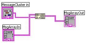 Jetzt möchte ich jede Nachricht, die mir in einem Cluster vorliegt an ein 1D-Array bestehend aus eben diesen Clustern anhängen. Dazu verwende ich zunächst ein SubVI wie es im angehängten Bild aufgebaut ist.