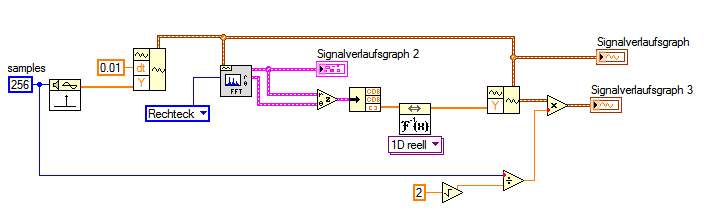 1.) das rücktransformierte Zeitsignal ist natürlich nicht das Originalsignal, sondern das mit Hann (Standardvorgabe) gefensterte Signal. Um das Originalsignel zu erhalten, muß die Fensterung auf "Rechteck" eingestellt sein.