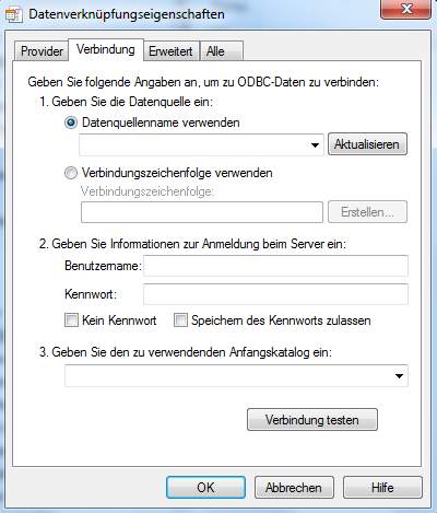 Wichtig ist das Du unter "Provider" den MySQL-ODBC-Treiber auswählst