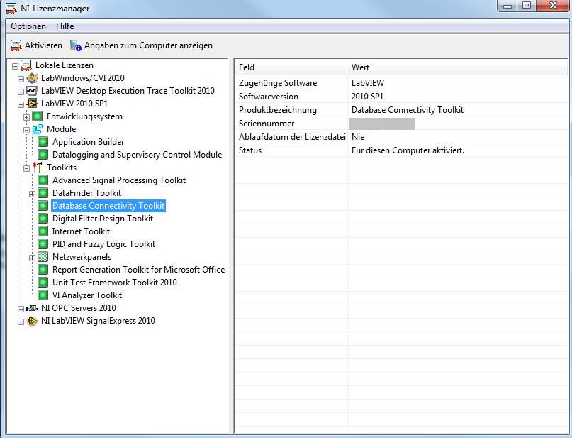 Ich hab das ganz normale Datenbank-Tool "Database Connectivity Toolkit" von LV installiert.
