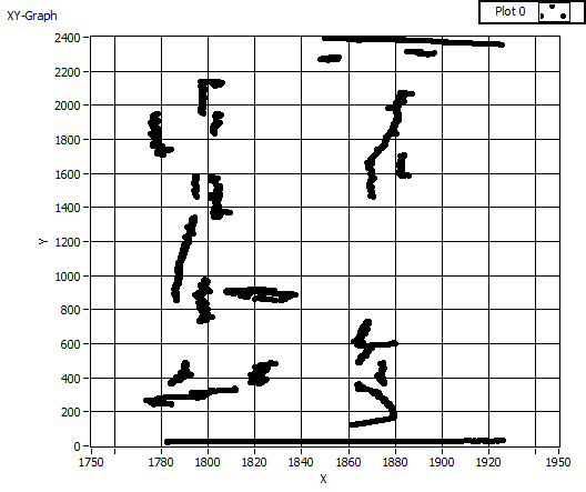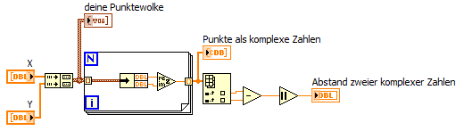 Und zwar bekomm ich nach einer Reihe von angewendeten Filtern von einem Bild die erkannten Punkte einer Schweißnaht. Diese Punkte sind dann in einem 1D-Array bestehend aus einem Cluster mit 2 Elementen (X & Y Wert) zusammengefasst.