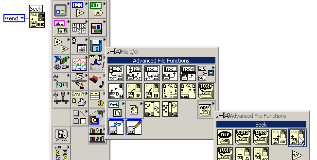 In LV 7 geht das an Ende der Datei springen nach dem File-Öffnen z.B. so: