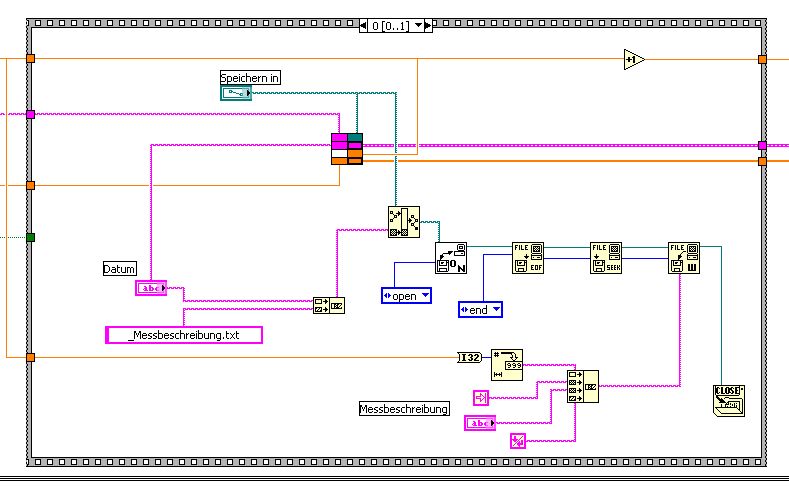 Und zwar möchte ich die Parameter, die ich für meine Messung einstelle parallel in eine Datei schreiben lassen. Sprich ich gebe in den entsprechenden Controls Werte ein, womit LV schließlich startet und parallel sollen die Werte abgezweigt werden und in eine txt - Datei geschrieben werden.
