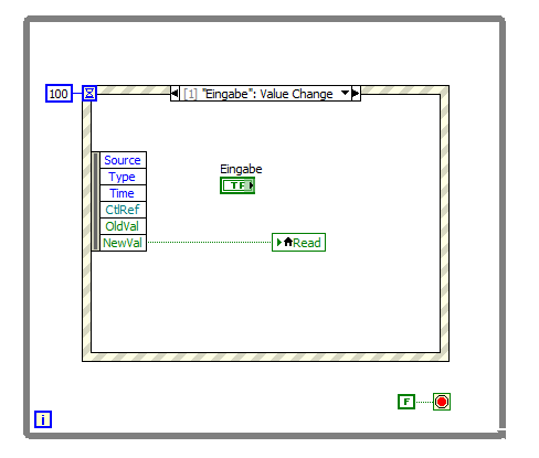 Nun habe ich weitere Ereignis-Case in denen ich bei "value change" den Wert an die SPS schreibe. Das klappt zwar, aber manchmal wird mein neuer Wert noch vor dem senden von dem alten (ausgelesenen) Wert überschrieben (selbst bei booleans!!). Wie kann ich das verhindern? Macht die Eventstrucktur immer erst das case fertig bevor sie auf das nächste Event reagiert?