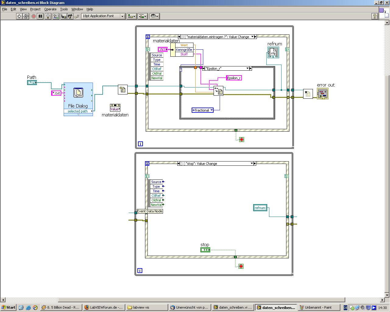 ich will aus einem umfangreicheren haupt_vi materialdaten in ein config file schreiben bzw aus diesem lesen.