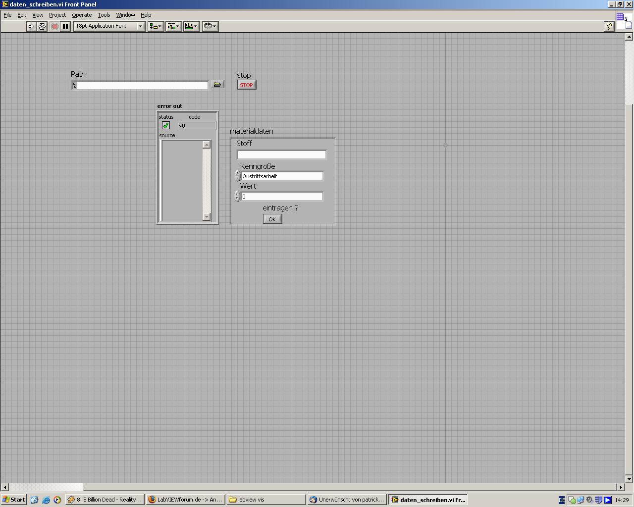 das sub_vi funktioniert ja ohne probleme, nur wenn ich es in ein haup_vi einbaue und den stopp-button verdrahte klappt es nicht und das sub_vi läuft die ganze zeit und deswegen gehts nicht weiter