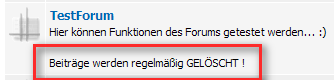 Beim nächsten Beitrag, den du im "Testforum" postest, werde ich von diesem Hinweis hier:
