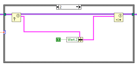 ich versuche mir gerade eine Grundstruktur für ein Messprogramm aufzubauen. Dabei möchte ich in einer While-Schleife Werte die von Extern kommen verarbeiten und in Abhängigkeit des eingehenden Werts Flags setzen oder bestimmte Werte in einem Array speichern. All diese Daten habe ich in einem Cluster zusammengefasst und stelle dieses über einen Melder in einer zweiten While-Schleife zur Verfügung. In dieser Schleife läuft dann der eigentliche Zustandsautomat, der auf die Daten im Cluster zugreift und diese auch ändern kann.