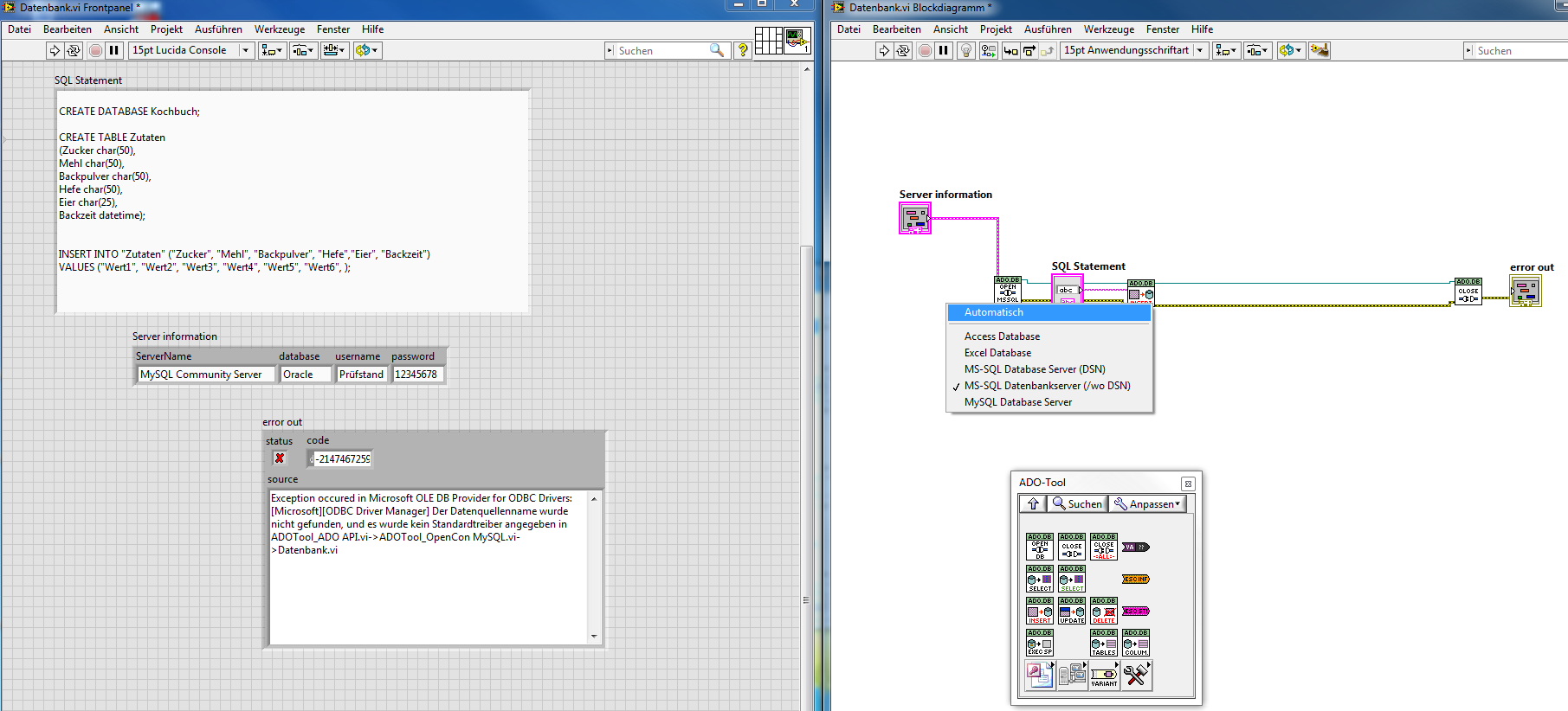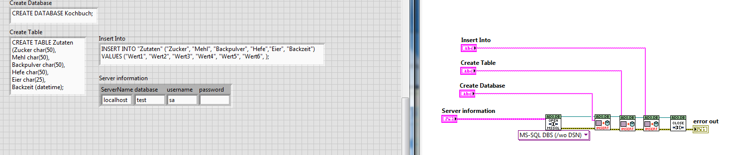 Für das VI "Open MSSQL" muss man für MS-SQL DB Server Informationen eingeben. (siehe Bild)