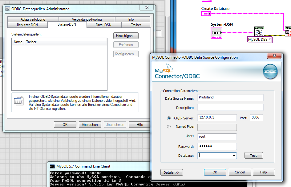 Ging dafür auf System DSN, dann auf hinzufügen, wählte als Datenquelle den MySQL ODBC 5.3 ANSI Driver aus.