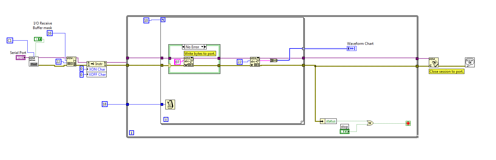 Du musst dir nochmals die Konzepte "Datenfluss" und "Sequenzierung", zwei grundlegende Konzepte von LabVIEW, verinnerlichen.