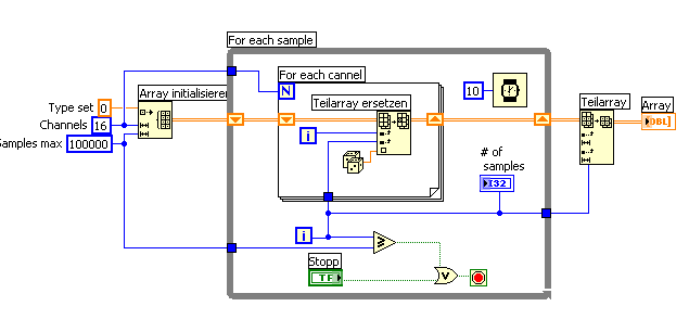 In beiden Fällen besitzt die For-Schleife ein Schieberegister, das die Daten des Array während des Ablaufes der Schleife enthält.