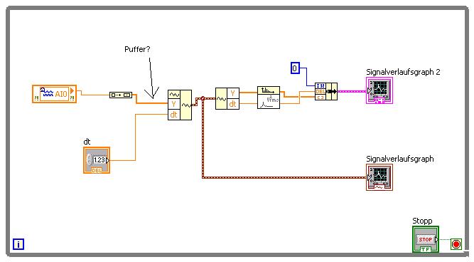 Momentan ist es ja logischerweise so, dass der Wert gelesen wird, der einzeln in das Array geschrieben wird, und der dann einzeln weiter gegeben wird. Ist die Bufferfunktion nicht auch mit dem Array anwendbar? Also in das Array z.B. 1000 Werte schreiben und die dann analysieren, und dann in der neuen Schleife die beginnt das Array neu schreiben lassen? Kann oder muss man dann auf den Signalverlauf verzichten?