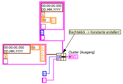 Ja genau, ich experimentiere gerade mit Clusterkonstanten, in die ich so nen Signalverlauf mit Startzeitstempel, dt, Messwerten hineingezogen habe + nen String für Kanalbezeichnung, der Signalverlaufausgang hat den Datentyp waveform