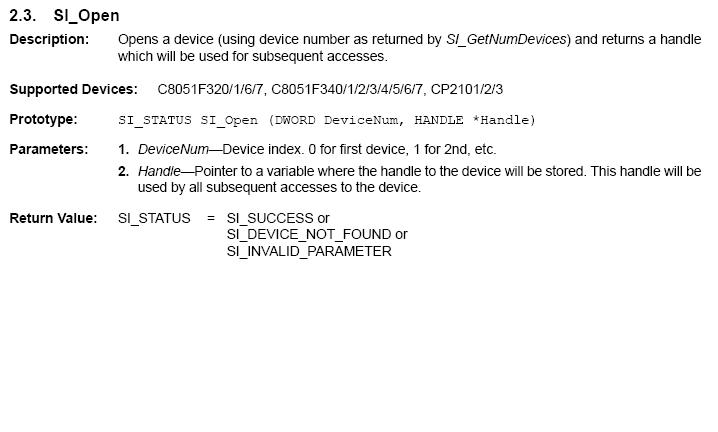 Ich habe gerade dasselbe Problem, dass ich eine externe Funktion aufrufen will und dieser einen Parameter vom Typ HANDLE übergeben muss. Ein Bild mit der Beschreibung von der Funktion hab ich mal angehängt. Bei dem Gerät, das ich über die dll ansprechen will, handelt es sich um ein seriell-USB-Wandler von Silabs.