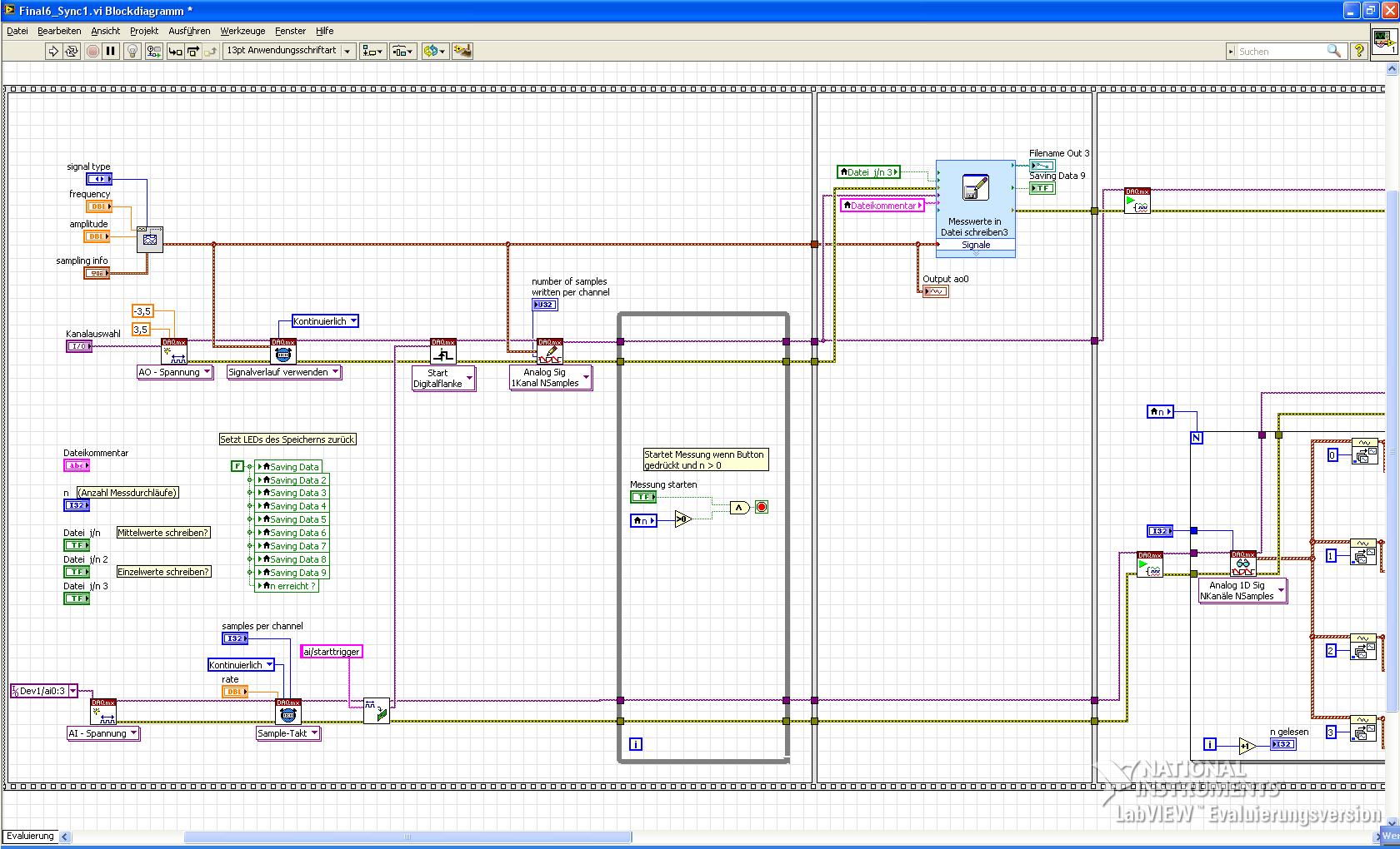 Also ich möchte mit dem Programm die Hardware NI usb 4431 wie folgt ansteuern: Ausgabe eines (Sinus)Signals über den AO und Erfassung der Signale der Eingänge Ai0 bis Ai3.