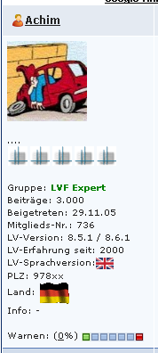 Übrigens, bei mir im Forum bin ich erst ein Expert, der höchste Rang in meinem Forum ist 5000 Posts = Guru.