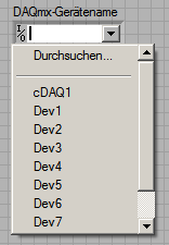 ' schrieb:Da hast Du nicht genau genug geschaut bzw. es ist in der Palette zu gut getarnt. Es gibt das Bedienelement, (die Konstante , die Anzeige) "DAQmx Gerätename":