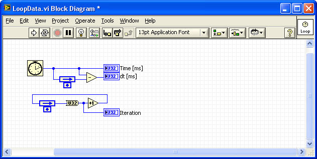 ich mache das immer über Schieberegister. Habe hierfür ein kleines VI gebastelt, das ich lediglich in meine Schleife platzieren muss. Dann kann ich dt, Iterationsindex und aktuelle Zeit an einer beliebiger Stelle in der Schleife auslesen, ohne extra Verdrahtungen (siehe Bild).