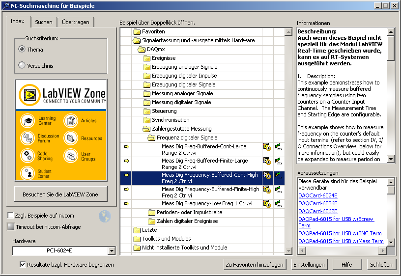 hm..ich hab bei der karte ein DIO benutzt mit Digital GND und kein PFI/CTR Gate.. soll ich disen eingang nehmen ? und dann gehts ?? und bei der DAQ task lesen dann einfach Freuqeunz messen sowie im beispiel wenn ich richtig verstehe. !??