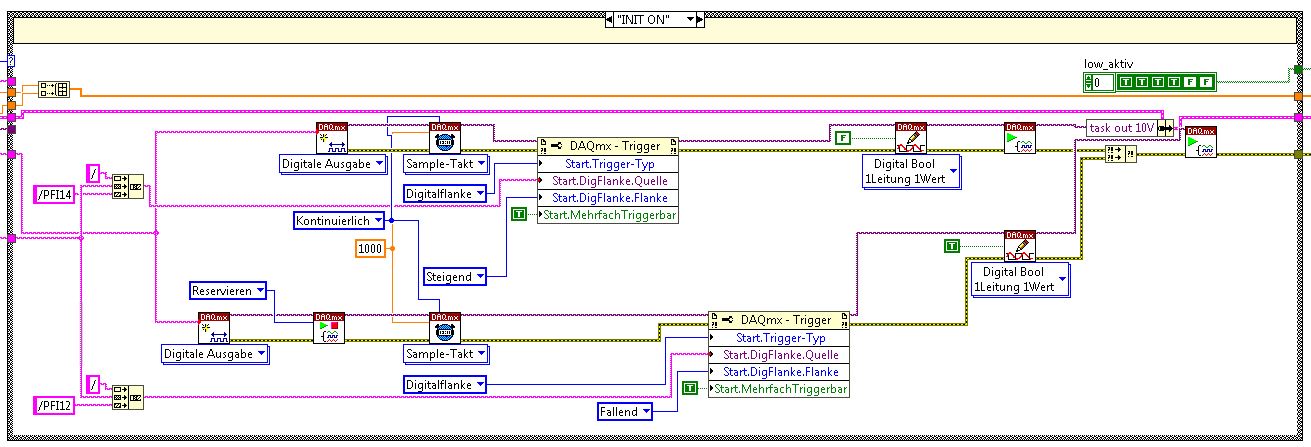 So wie mein VI aktuell aufgebaut ist, habe ich noch ein Problem mit dem Sample Clock.vi (?!), welches ich wohl für den Trigger brauche...