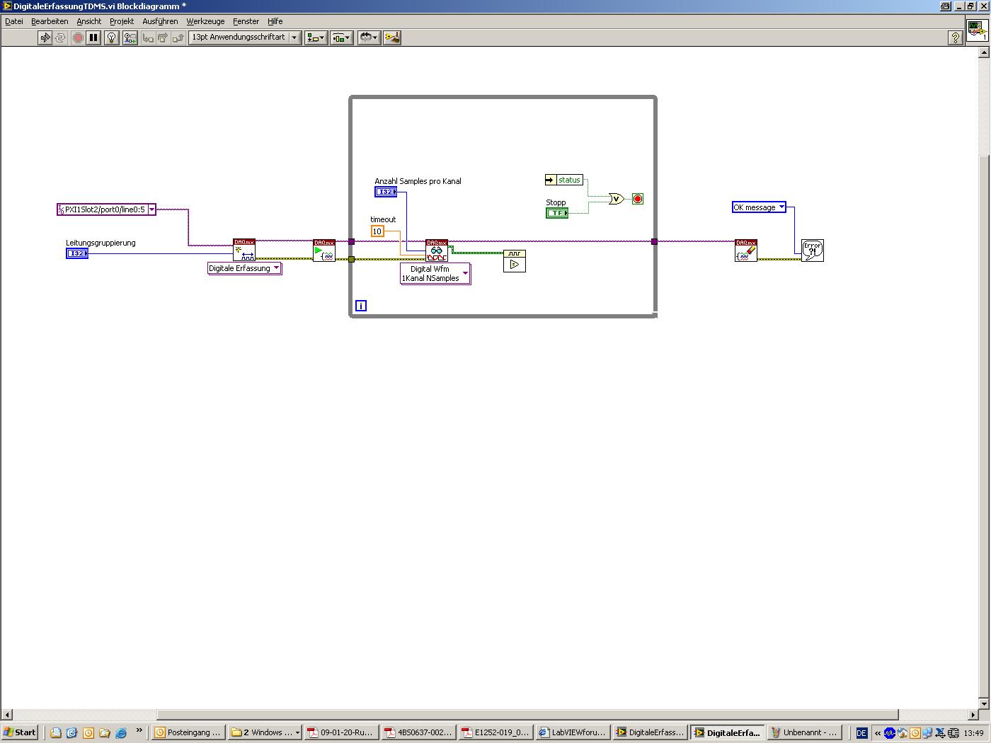 ' schrieb:Wenn ich über einen Task mehrere Kanäle erfasse, dann führt aus dem DAQ-mx Read Vi nur eine Verbindung nach aussen.