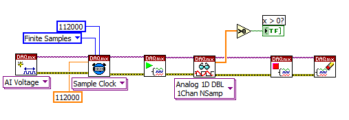 Die Beispiele haben mir leider nicht wirklich weitergeholfen , wie wie schaff ich das LabVIEW zusagen , dass es die >0 Abfrage bei den reinkommenden Daten nicht staendig, sondern im Takt von zb. 112kHz machen soll?