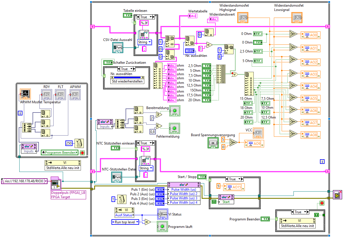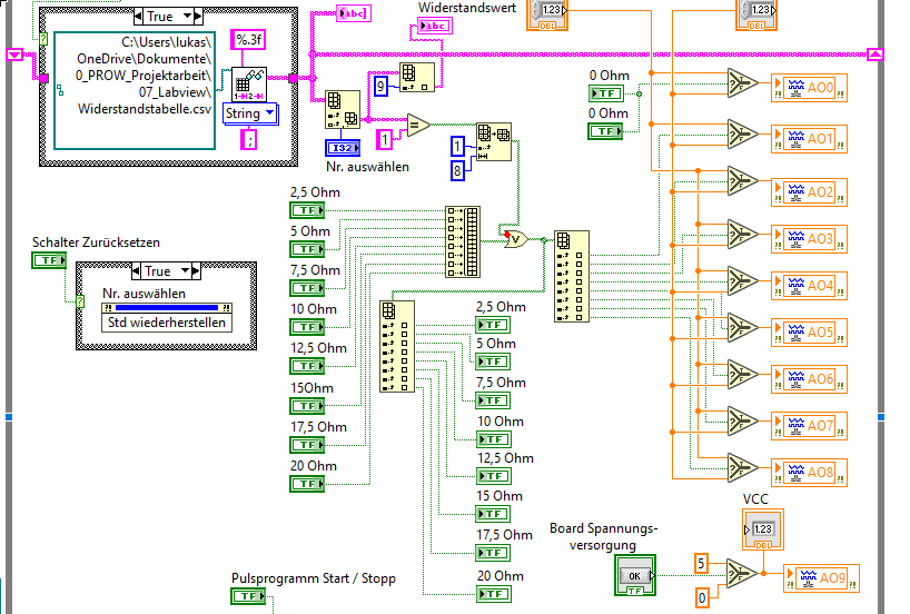 Habe nochmal das Haupt VI aktualisiert. Ich verstehe wie gesagt nicht wie ich die ganzen Bedienelemente und Anzeigeelemente noch schöner mit dem Array verknüpfen kann.