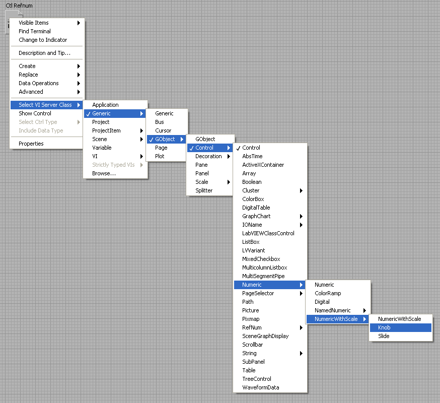 ich habe ein VI programmiert, das beim Starten ein paar Eigenschaften eines Drehreglers setzt und danach bei jeder Wertänderung einen DAC-Wert entsprechend setzt. Alles funktioniert soweit. Aber nun möchte ich das Ganze in ein Unterprogramm umwandeln, dass eine Referenz auf ein Drehregler (oder noch besser – auf ein allgemeines numerisches Eingabeelement) übergeben bekommt und dann die jeweiligen Aktionen ausführt.