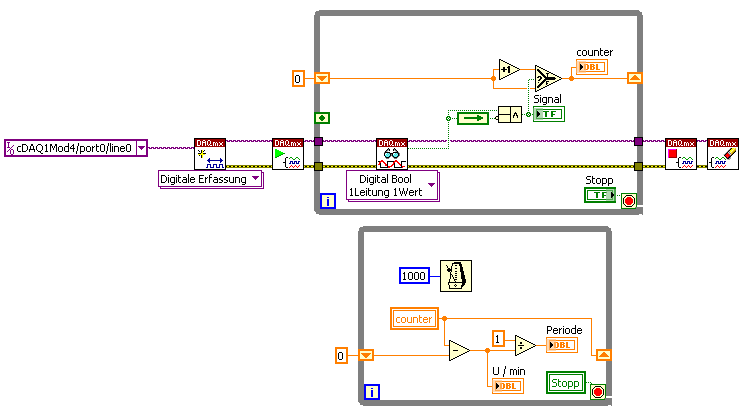 Alternativ-Idee: Überlass die Drehzahlerfassung dem Counter deines cDAQ-Modul. Du musst "nur" die DIs entsprechend routen.