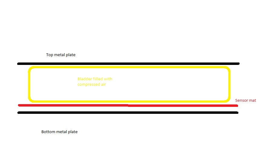 Der Druck soll in einem Luftkissen geregelt werden. Dieses Luftkissen (zwischen zwei Stahlplatten) erzeugt einen Druck auf eine Drucksensormatte. Diese wird damit kalibriert. Es geht hier nicht um einzelne Pascals.