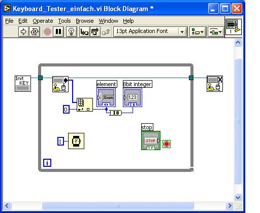 Dann habe ich ein vi entwickelt, welches mir den Wert der gedrückten Taste zurückgibt. Sobald ich die escape-Taste drücke kommt komischerweise der Wert 62 heraus?????? :?