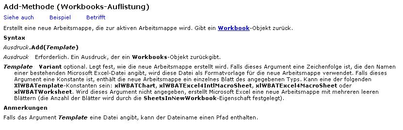 Hmm, das habe ich jetzt auch noch nie gemacht, aber die Methode "Workbooks.Add(template)" sieht danach aus.