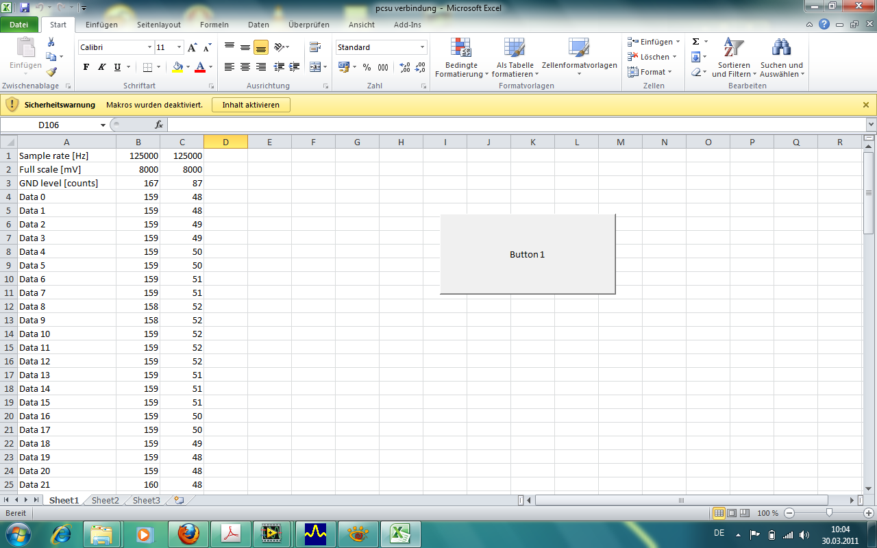 Also auchbei näherer Betrachtung sagen mir die Zahlen, die da rauskommen echt nichts. Ich hatte es ja schonmal in Exel eingebunden und da ist es wirklich so, dass die ersten drei Werte Sample rate, Full scale und ground level sind und danach kommen die Messwerte. aber die Zahlen in labView stimmen damit überhaupt nicht über ein.Ich hab da mal zwei Screenshots angehängt.