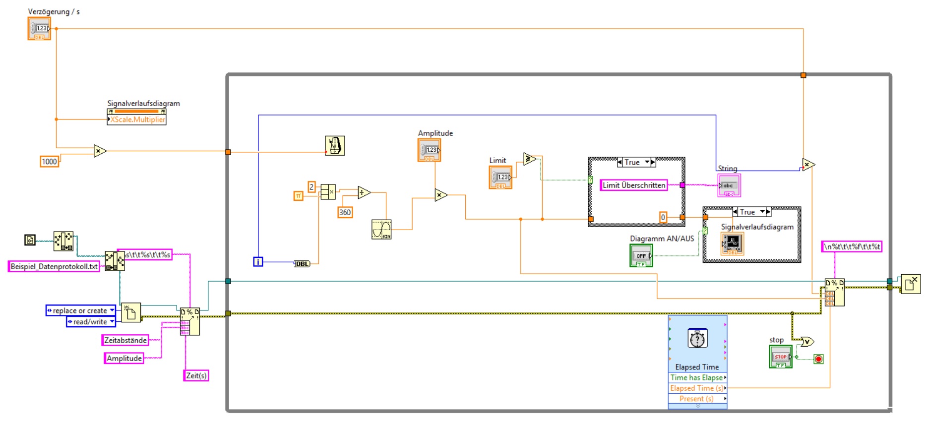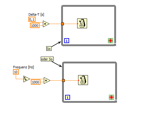 3. Zu guter letzt wüsste ich gerne, ob die Verzögerung/s, von der ich im Frontpanel spreche, das gleiche ist, wie die Frequenz der Datenprotokollierung? Denn unser Professor hat mal was von einer Frequenz gesprochen und da wusste ich nicht genau, ob das dasselbe ist.