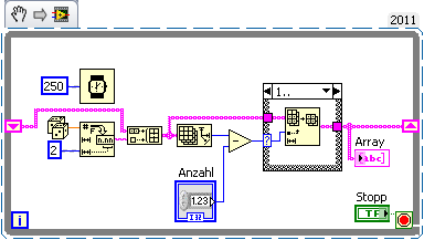 Dein Beispiel-VI erzeugt ein Array gewünschter Größe mit lauter gleichen Einträgen. Die FOR-Loop ist momentan sinnfrei, da als Count eine Null vorgegeben wird!?