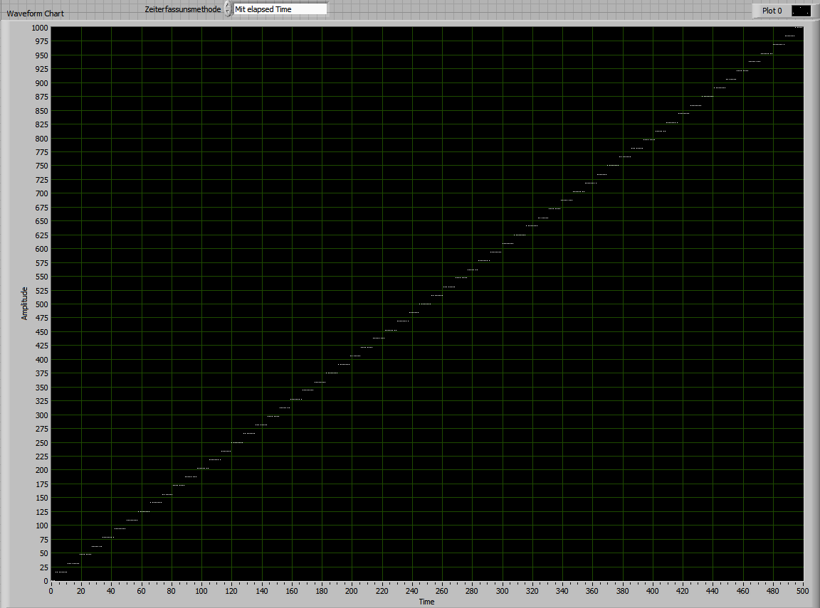 Wa Du beschreibst, kann ich an Deinem VI weder beobachten noch wäre es plausibel. Das Updaten eines Graphen oder Diagramms dauert mehrere Millisekunden, und es ist noch mehr, wenn Du die automatischen Skalenanpassung aktiviert hast. Demzufolge ist die Laufzeit für einen Schleifendurchgang erheblich größer als der Timerwert von 1 ms. Und das zeigt die elapsad Time auch an, also viel zu große Werte und nicht wie Du sagst zu kleine Werte.